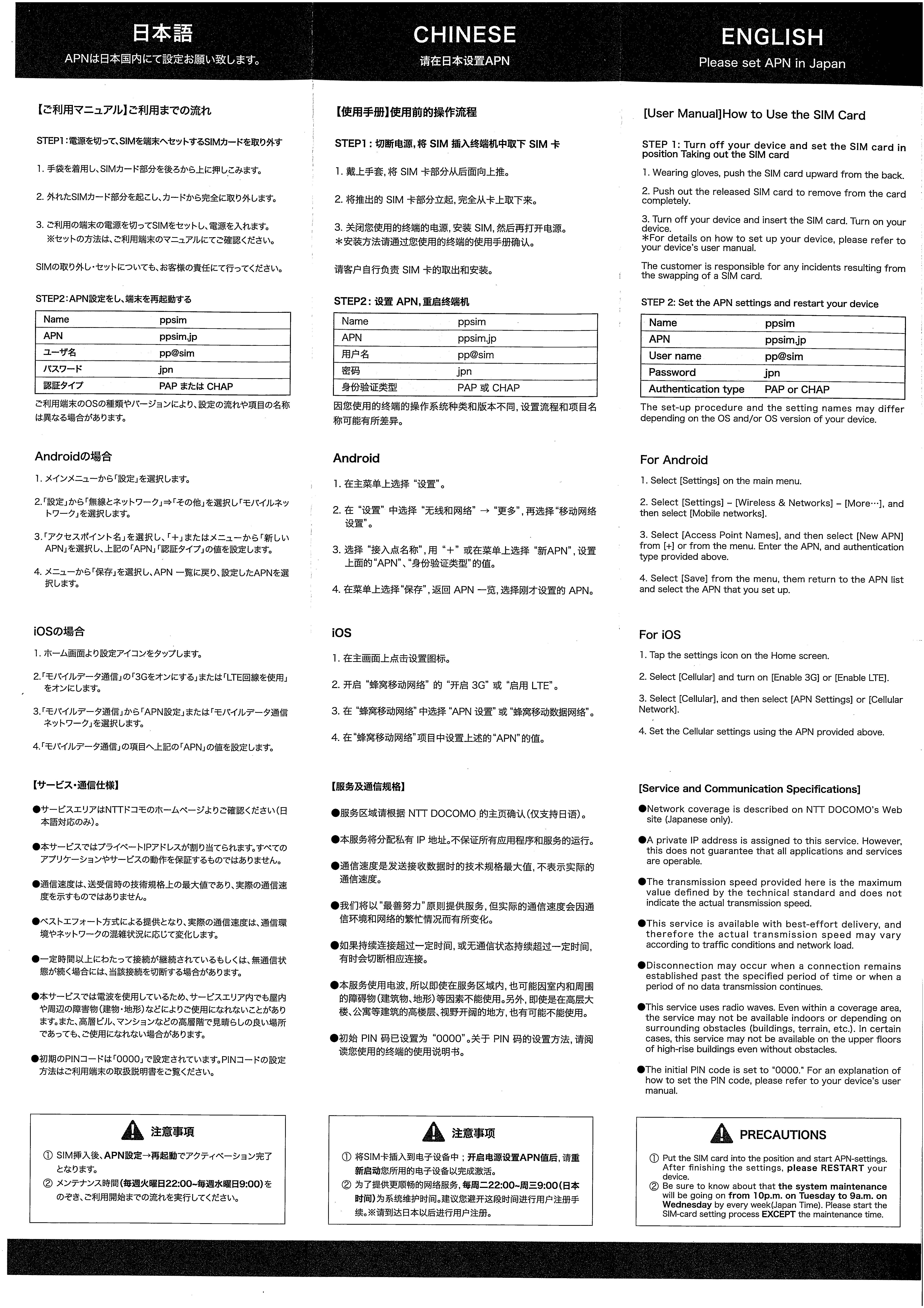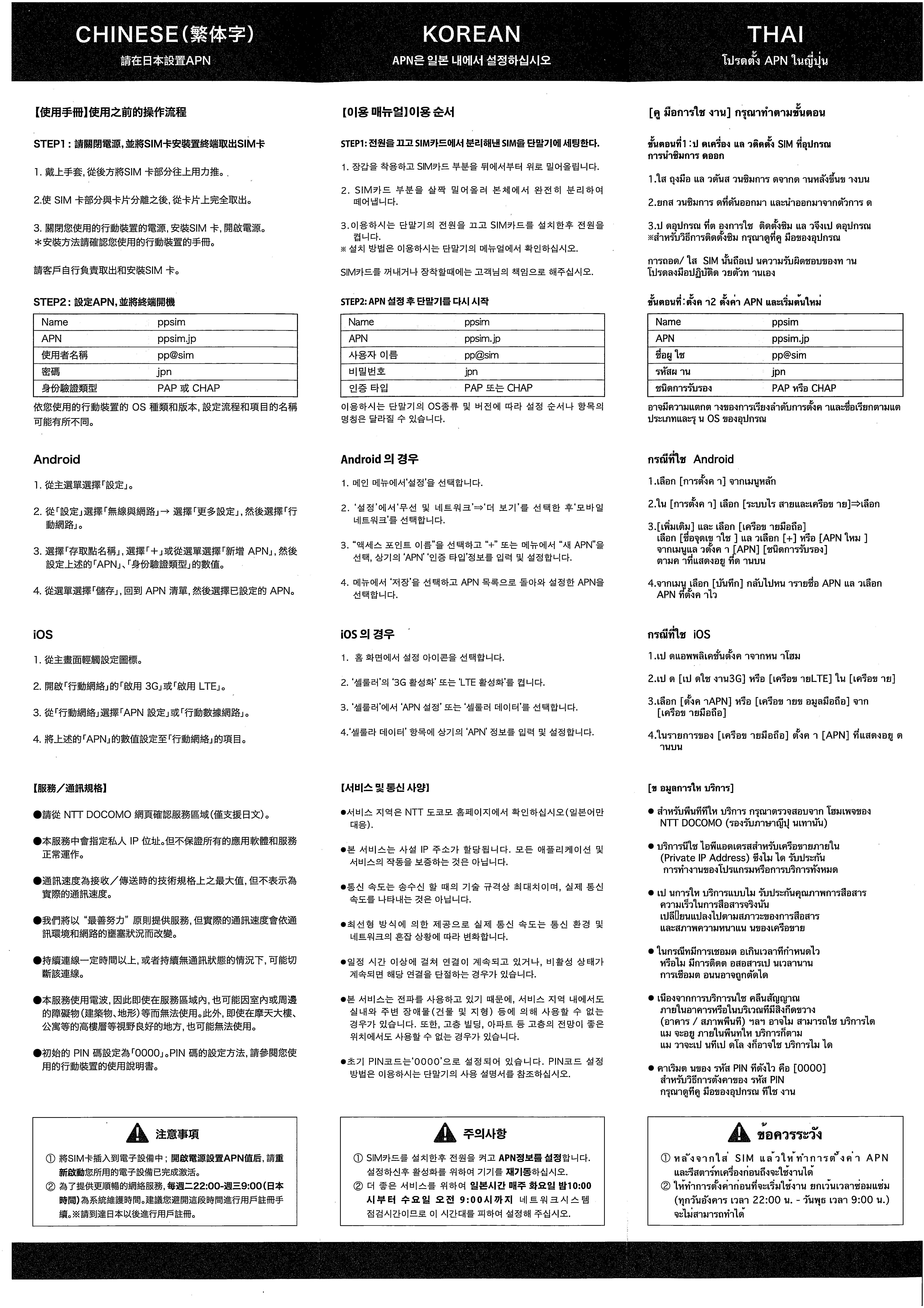同梱物:SIMカード(マルチSIM)、多言語説明書